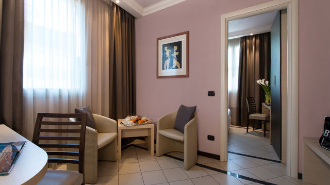 Le camere si presentano ampie e luminose, sono composte da zona soggiorno con spazio relax, letto matrimoniale, bagno privato e servizio di the e tisane.
